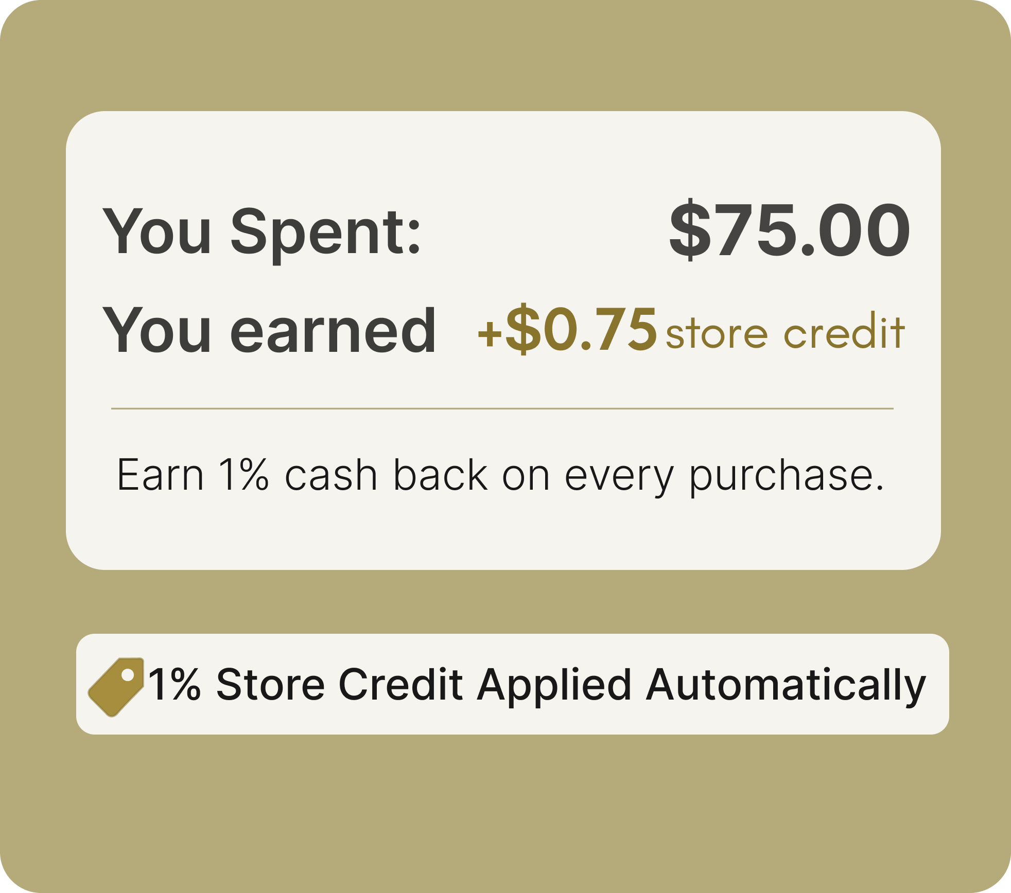 Get 1% of your pre-tax, pre-shipping subtotal as store credit—automatically applied to your next order. No codes, no hassle.